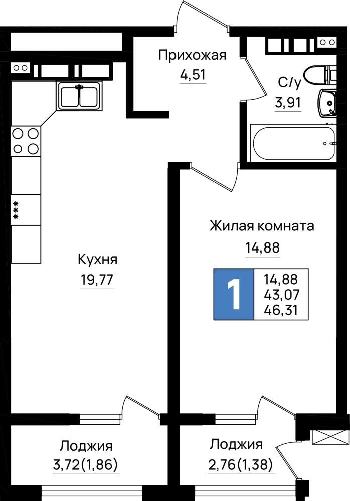 Продажа квартиры в новостройке в Новороссийске 41-50 кв.м.