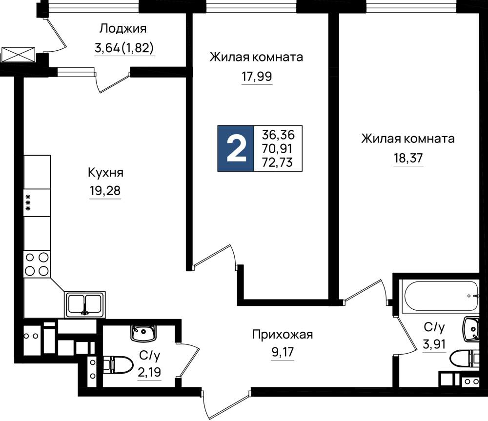 Продажа двухкомнатной квартиры в новостройке в Новороссийске от собственника