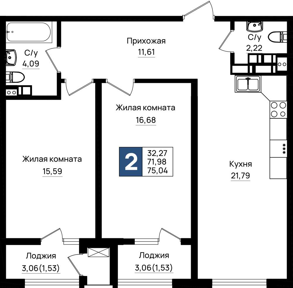 Продажа двухкомнатной квартиры в новостройке в Новороссийске 51-100 кв.м.