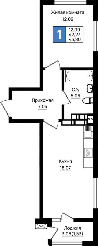 Продажа однокомнатной квартиры в новостройке в Новороссийске от собственника