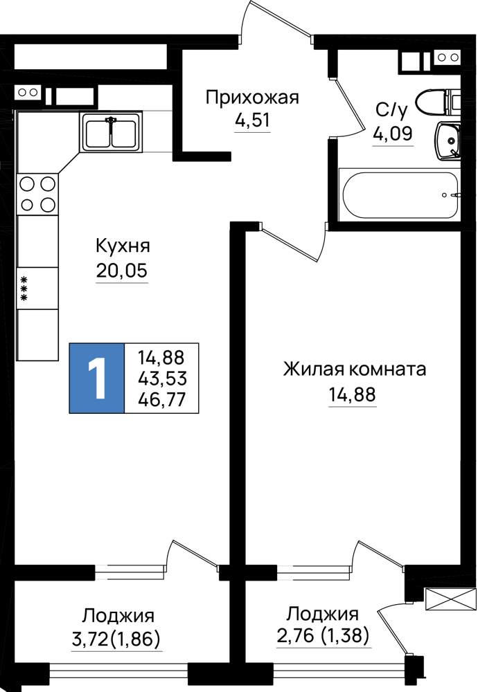 Продажа однокомнатной квартиры в новостройке в Новороссийске от собственника