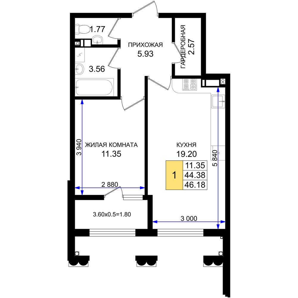 Продажа однокомнатной квартиры в новостройке в Новороссийске от собственника