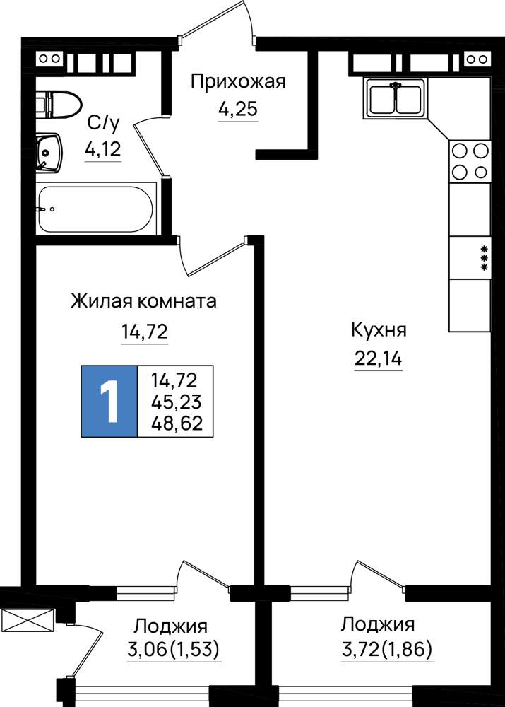 Продажа однокомнатной квартиры в новостройке в Новороссийске 41-50 кв.м.