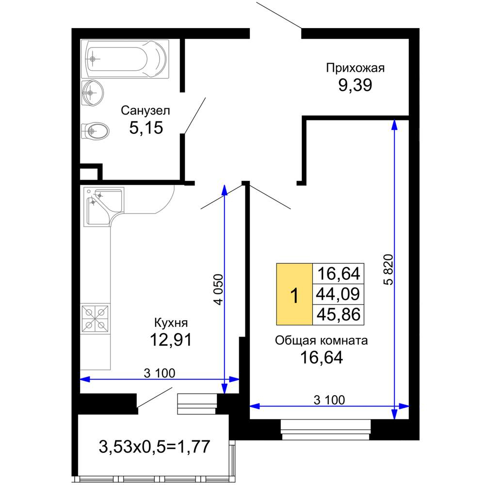 Продажа однокомнатной квартиры в новостройке в Новороссийске 41-50 кв.м.