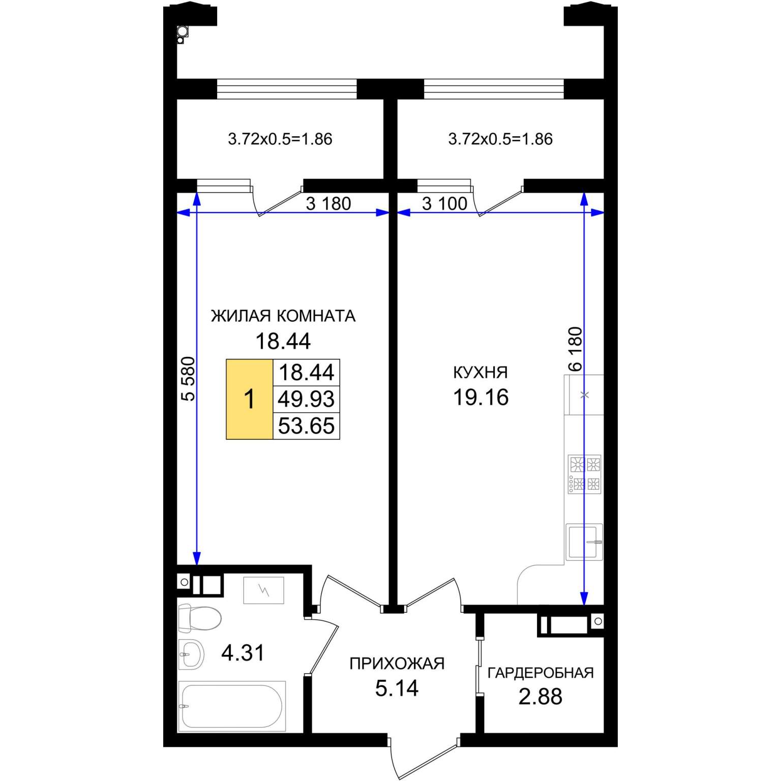 Продажа однокомнатной квартиры в новостройке в Новороссийске 51-100 кв.м.