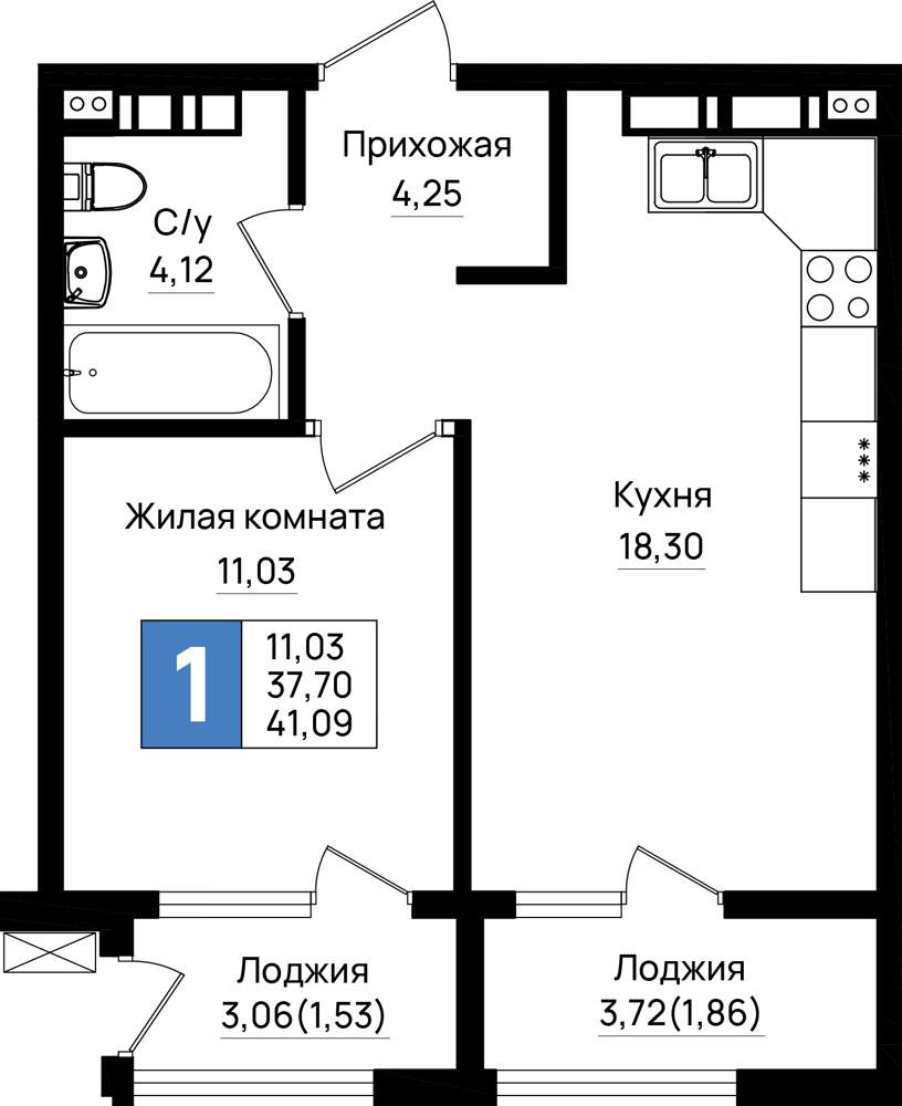 41.1 м2