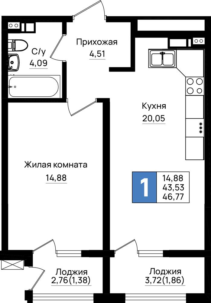 76.6 м2